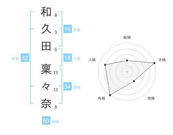 和久田 稟々奈さんを姓名の画数から五運を鑑定