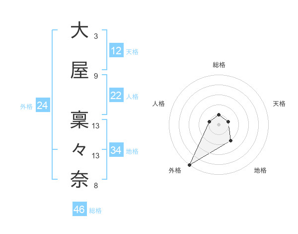 大屋 稟々奈さんを姓名の画数から五運を鑑定