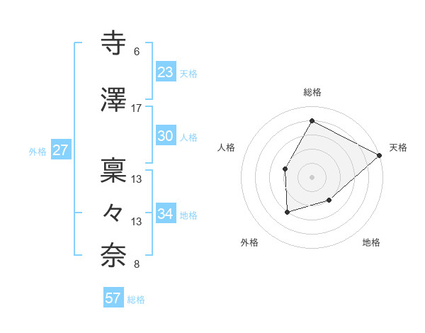 寺澤 稟々奈さんを姓名の画数から五運を鑑定
