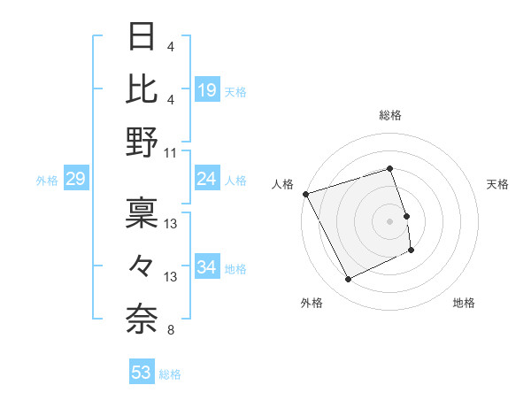日比野 稟々奈さんを姓名の画数から五運を鑑定