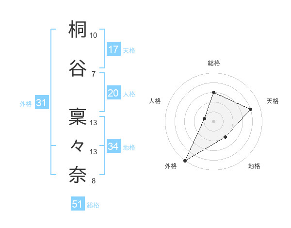 桐谷 稟々奈さんを姓名の画数から五運を鑑定