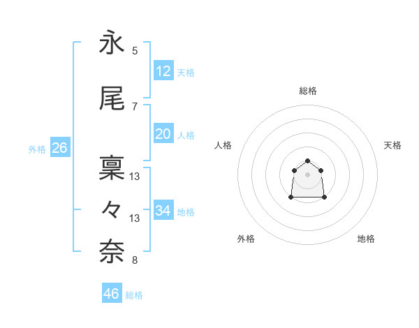 永尾 稟々奈さんを姓名の画数から五運を鑑定