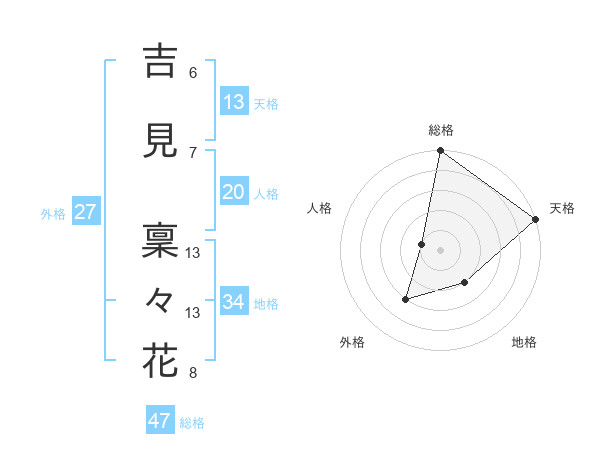 吉見 稟々花さんを姓名の画数から五運を鑑定