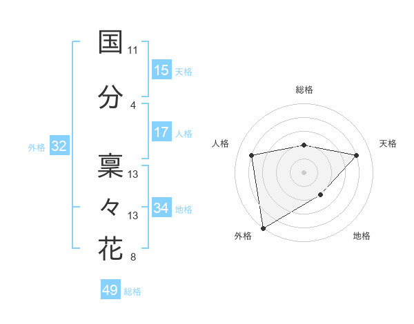 国分 稟々花さんを姓名の画数から五運を鑑定