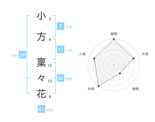 小方 稟々花さんの総格は41画の5点