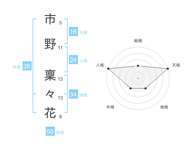 市野 稟々花さんを姓名の画数から五運を鑑定