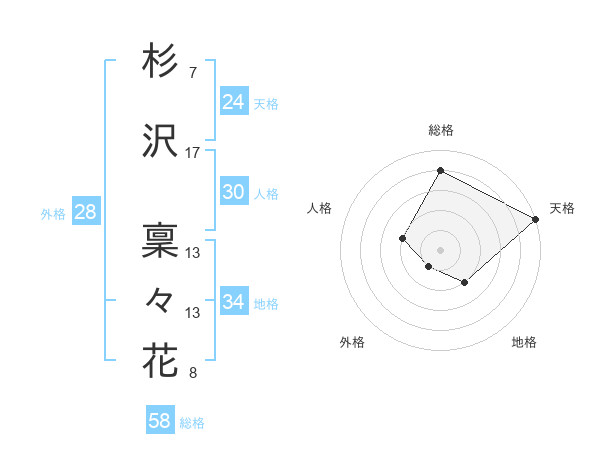 杉沢 稟々花さんを姓名の画数から五運を鑑定