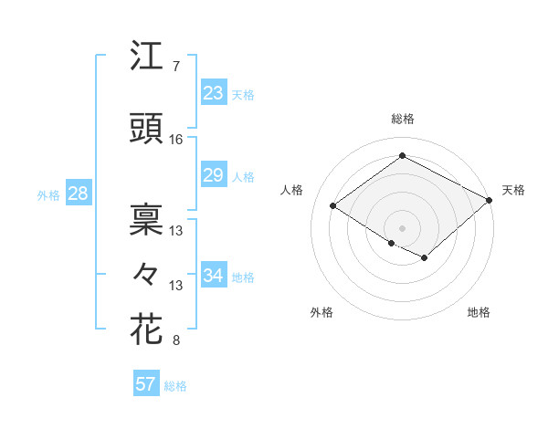 江頭 稟々花さんを姓名の画数から五運を鑑定