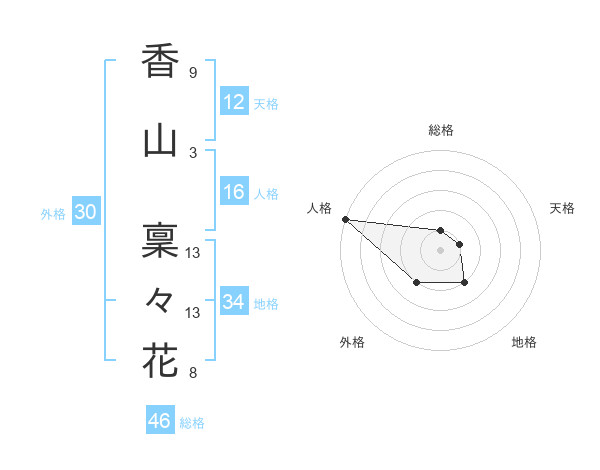 香山 稟々花さんを姓名の画数から五運を鑑定
