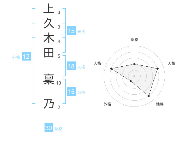 上久木田 稟乃さんの天格は15画の4点!