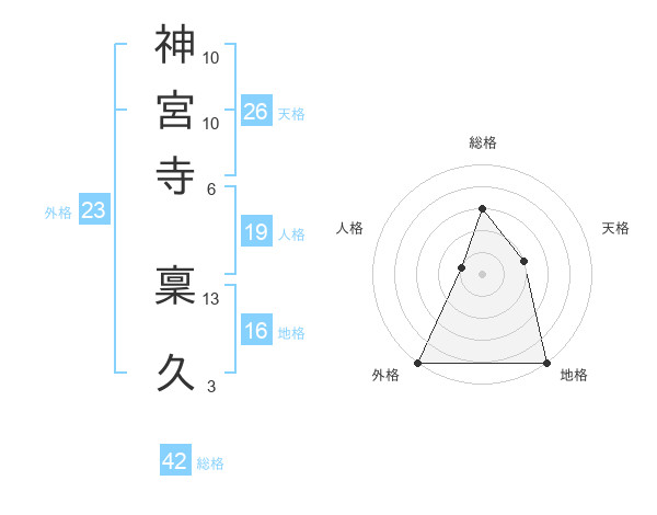 神宮寺 稟久さんの総格は42画の3点!