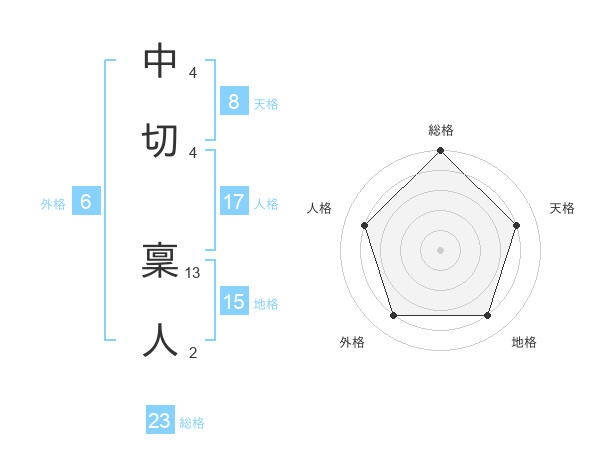 中切 稟人さんの天格は8画の4点!