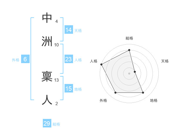 中洲 稟人さんを姓名の画数から五運を鑑定