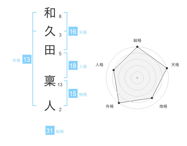 和久田 稟人さんを姓名の画数から五運を鑑定