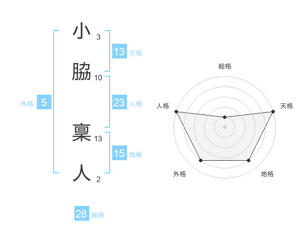 小脇 稟人さんの天格は13画の5点!