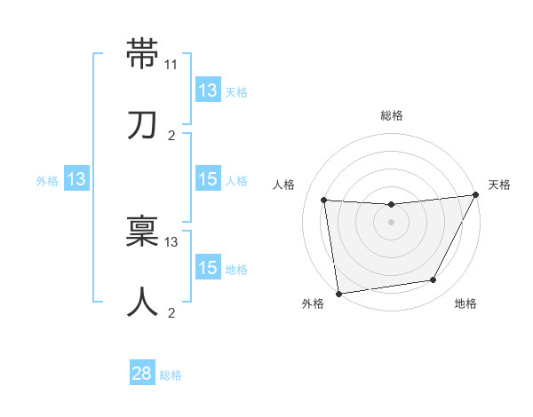 帯刀 稟人さんの外格は13画の5点!