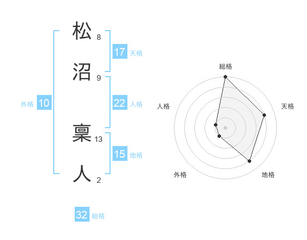 松沼 稟人さんの総格は32画の5点!