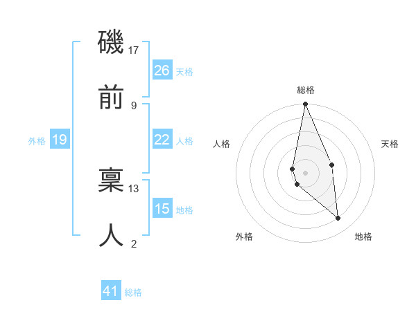磯前 稟人さんの天格は26画の2点!