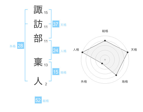 諏訪部 稟人さんの総格は52画の4点!