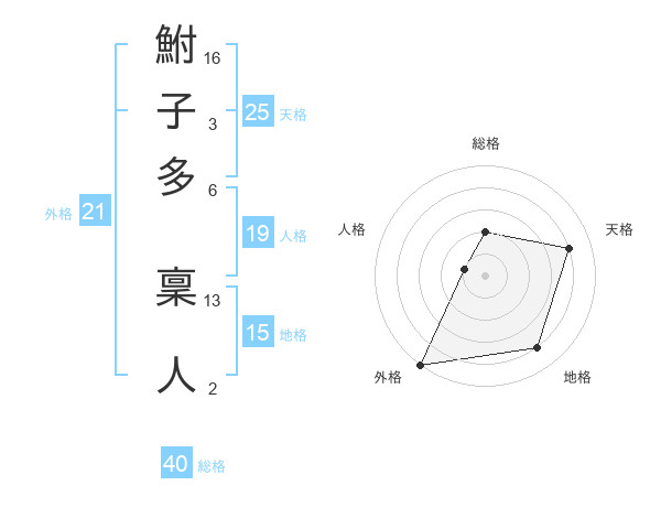 鮒子多 稟人さんを姓名の画数から五運を鑑定
