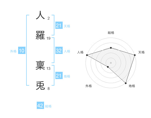 人羅 稟兎さんの天格は21画の5点!