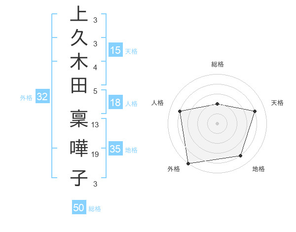 上久木田 稟嘩子さんの総格は50画の2点!