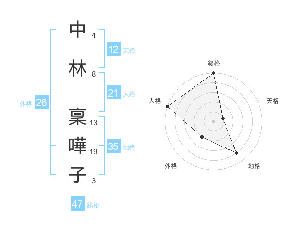 中林 稟嘩子さんの総格は47画の5点!