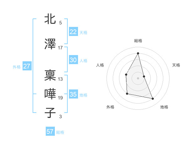 北澤 稟嘩子さんを姓名の画数から五運を鑑定
