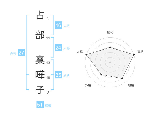 占部 稟嘩子さんを姓名の画数から五運を鑑定