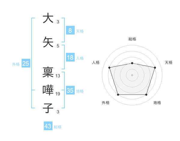 大矢 稟嘩子さんを姓名の画数から五運を鑑定