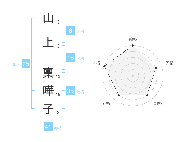 山上 稟嘩子さんを姓名の画数から五運を鑑定