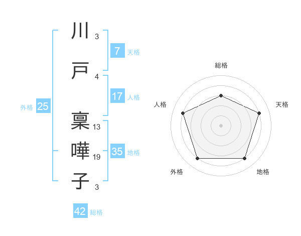 川戸 稟嘩子さんを姓名の画数から五運を鑑定