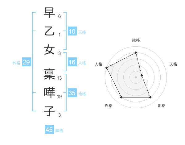 早乙女 稟嘩子さんを姓名の画数から五運を鑑定