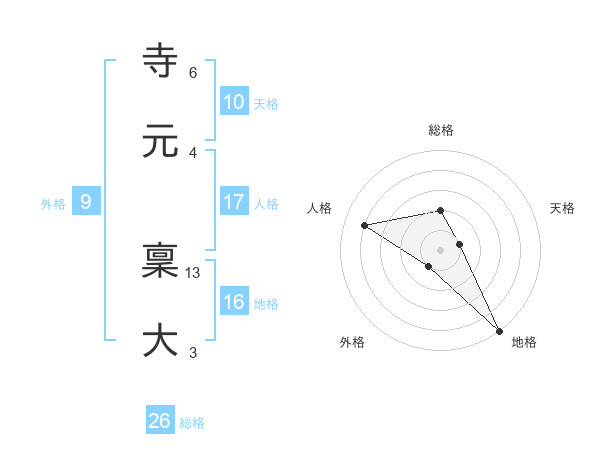 寺元 稟大さんの総格は26画の2点!