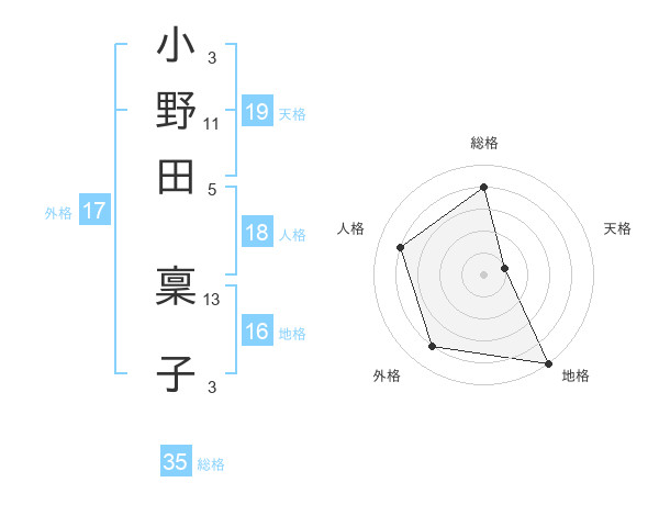 小野田 稟子さんを姓名の画数から五運を鑑定