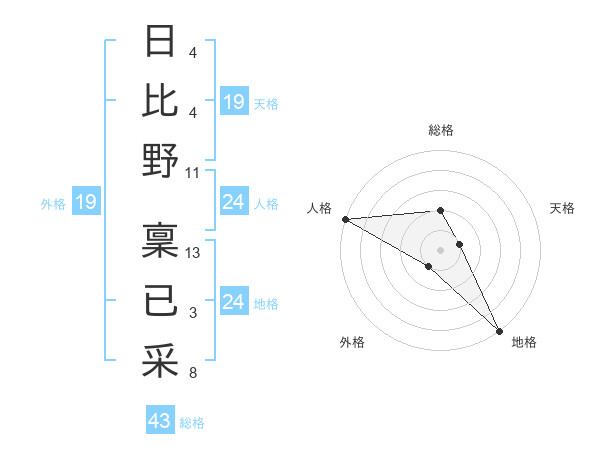 日比野 稟已采さんの総格は43画の2点