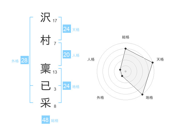 沢村 稟已采さんを姓名の画数から五運を鑑定