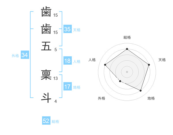 歯歯五 稟斗さんを姓名の画数から五運を鑑定