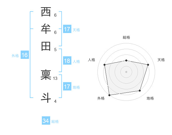 西牟田 稟斗さんを姓名の画数から五運を鑑定