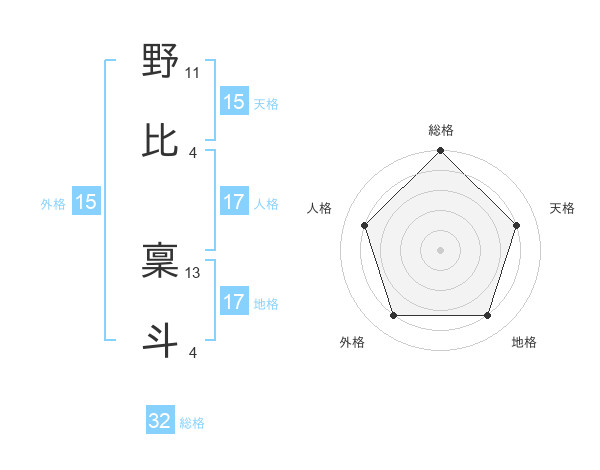 野比 稟斗さんを姓名の画数から五運を鑑定
