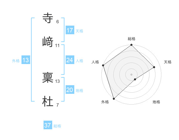 寺﨑 稟杜さんの総格は37画の5点!