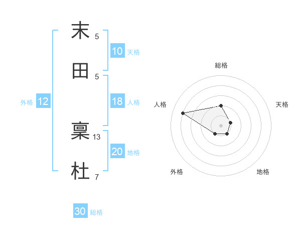 末田 稟杜さんを姓名の画数から五運を鑑定