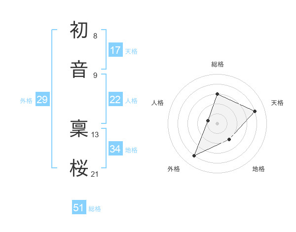 初音 稟桜さんを姓名の画数から五運を鑑定