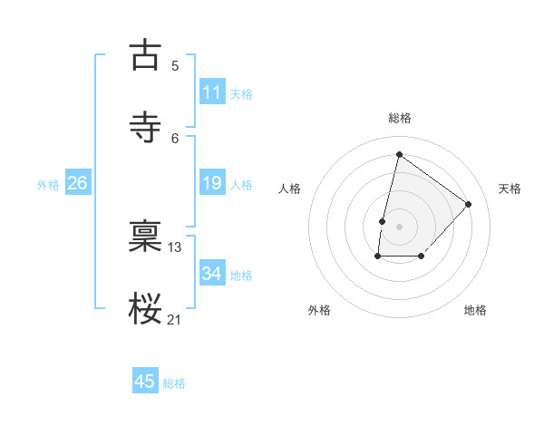 古寺 稟桜さんを姓名の画数から五運を鑑定