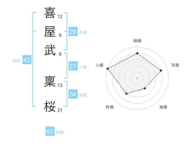 喜屋武 稟桜さんを姓名の画数から五運を鑑定