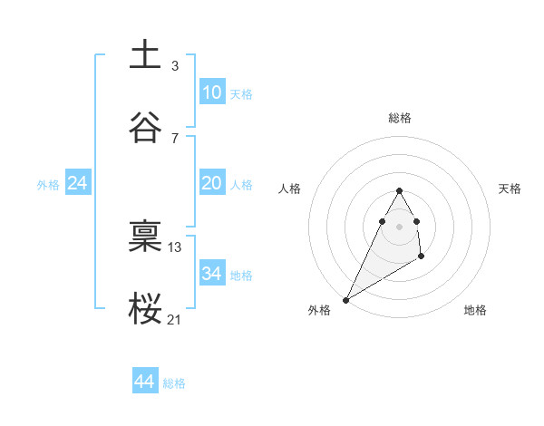 土谷 稟桜さんを姓名の画数から五運を鑑定