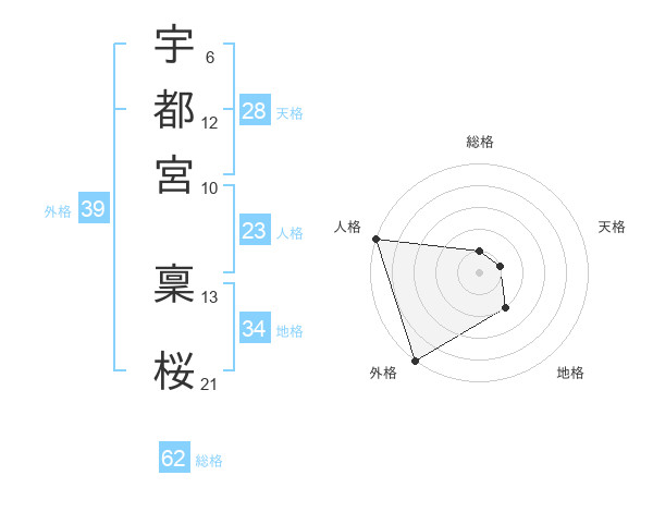 宇都宮 稟桜さんを姓名の画数から五運を鑑定