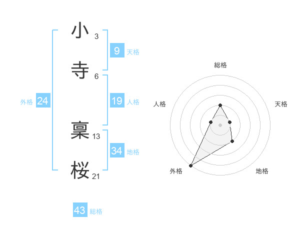 小寺 稟桜さんを姓名の画数から五運を鑑定