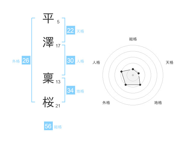 平澤 稟桜さんを姓名の画数から五運を鑑定