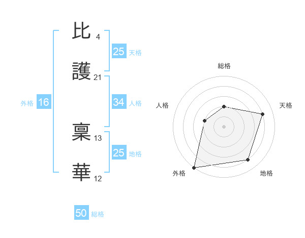 比護 稟華さんの天格は25画の4点!